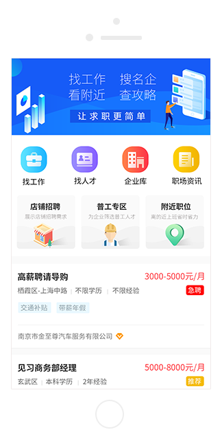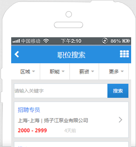 隨時(shí)隨地搜索工作,輕輕松松應(yīng)聘職位,工作前途一手掌握。